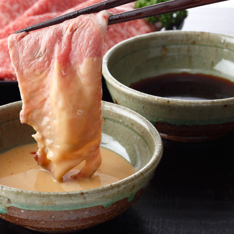 商品詳細 お肉のために探し求めて 薬味・タレ萬野屋の肉料理の「美味しさ」を知るあなたへ──萬野屋では焼肉だけでは終わらせません。しつこさのない極雌 萬野和牛に合った薬味・タレをご提案いたします焼肉店でもご提供している薬味は主に「究極 だし醤油」「金印 刻みわさび」すき焼きしゃぶしゃぶ店・肉居酒屋店では主に「極上 ぽん酢」「極品 ごまたれ」極雌 萬野和牛を日本の食文化でも堪能頂こうと、2022年に大阪駅直結LUCUA10階に「しゃぶしゃぶ萬野」をオープン。それと同時に、萬野和牛に合った「極上 ぽん酢」「極品 ごまたれ」を丁寧に開発。今では、ご来店のみなさまに親しまれ、彩り豊かな野菜もいろいろと一緒に食べられるとお喜び頂いております。極品 ごまたれしゃぶしゃぶの利用を前提として、少し濃いめのごまたれ一般的にしゃぶしゃぶで利用される一人前量は30〜60g当商品350gですので約5〜6名分(回分)しゃぶしゃぶ日本食文化しゃぶしゃぶには欠かせない存在が「ごまたれ」ではないでしょうか?萬野和牛をしゃぶしゃぶでご賞味いただくにあたって、鍋のおつゆと相まって美味くなるごまたれを開発いたしました。鍋料理以外にも、担々麺風スープや、冷やし中華のタレ、バンバンジー風サラダ、蒸し野菜ソース、餃子や春巻きのタレなどにご利用いただけます。常温配送残念ながら、ギフト包装は対象外です。しかし中は使い切りパックであるものの、写真のような紙パッケージに入っている状態ですのでお土産にしやすいです。ただし、お肉などを送るクール冷凍便に同梱はできません(中身は凍り、箱はふやけてしまいます)そのため、配達希望の場合は、お肉とは別にご注文くださいますよう、よろしくお願いいたします(それぞれに配送料がかかります)【配達】常温送料について常温商品のみで配達する場合の送料です【常温商品4個毎/1配送料】 ・北海道、沖縄 税込2310円 ・東北 税込1430円 ・その他地域 税込935円 萬野屋は、創業以来「肉の目利き」として磨き続けた確かな審美眼と技で、厳しい条件を満たした品質の良い黒毛和牛〈雌メス〉だけを厳選して提供しています。一頭買いによる希少部位の提供と、黒毛和牛〈雌メス〉へのこだわりが生み出す芳醇な味わいは、他にはない特別な食体験を叶えます。“肉のプロ”として、食卓に感動と物語を届けることを使命としています。本当の意味での一頭買い何百頭の枝肉を生の状態で検品。脂質・肉質を直接手で触れ脂の融点や肉の香りを吟味。(無駄な中間業者を挟まない)安売りではなく安くする我々の目利き・知識で仕入れを行います。そのためにも全社員で捌く技術をも体得し、いくつも業者を通さないことでコストを削減し、上質のお肉をギリギリまで抑えた価格で、お客様へお届けしております。いのちと向き合うから日々「いのち」と向き合う萬野屋では、牛肉を隅から隅まで余すことなくご賞味頂くことで、無駄なく好循環をもたらしていきたいと考えております。どうぞ今後とも萬野屋をご利用下さいませ。 商品名萬野屋謹製 極品ごまたれ内容量350g包装使い切り真空パック+紙パッケージ ※ギフト包装・のし不可※写真はすべてイメージです カートに入れる