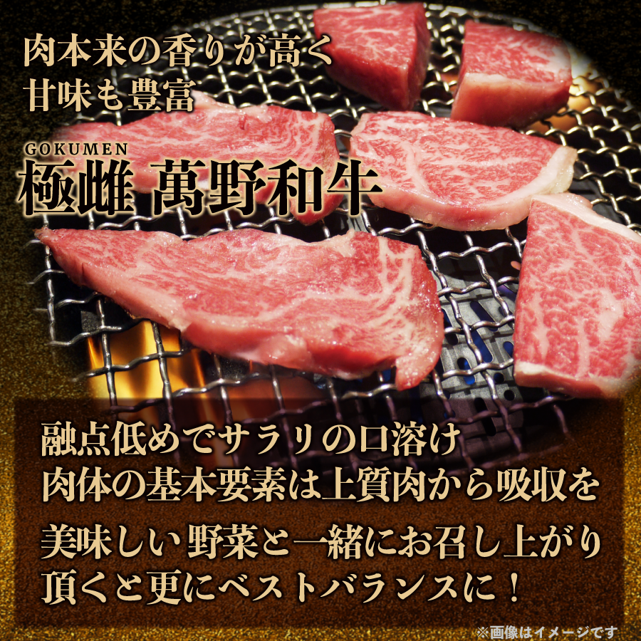商品詳細 夢のような3種を、萬野屋の目利きで厳選焼肉の「本当の美味しさ」を知るあなたへ──萬野屋では「焼肉用」というひとくくりでは終わらせません。牛には80種類以上の部位があり、それぞれ異なる味わいと魅力があります。使用部位:バラ、赤身、ロース、カルピ等萬野屋のプロが、入荷状況によりその日のベストなお肉3種類をお詰めいたします。1箱の内容量は〈400g(2-3人前)〉〈1kg(5-7人前)〉より選択ください。家庭用商品と同時購入も可能。その場合も配達限定となり、ご家庭用商品は送料無料となります。※コミコミギフト1箱購入につき、1配送・合計3kg分まで無料となります(例:コミコミギフト2箱注文される場合、ご家庭用商品も含めて6kg迄の2箱配送料が無料となります)※ご家庭用商品同時購入でもご家庭用商品は簡易包装のままとなります盛り合わせ例萬野屋の目利きでその時美味しいお肉を厳選しているので、部位のご指定はいただけません。仕入れ状況からベストな3種の組み合わせでお届けいたします。例)熟成ロース、バラ、赤身肉等3種総合 脂の少なさ/★★★ やわらかさ/★★★バラ濃厚な旨味とジューシーな脂。適度な弾力があり噛むほどに旨味が感じられます。赤身しっかりとした肉の味わいが楽しめる部位。噛むほどに旨い。脂肪が少なく少し弾力がありながらも赤身であっさりとしているロース赤身と霜降りのバランスが良く、柔らかさと旨味を兼ね備えていますこれらはあくまでも盛合せ例となります。実際にはその日の入荷状況により、ベストな3種をお詰めいたします。萬野屋は、創業以来「肉の目利き」として磨き続けた確かな審美眼と技で、厳しい条件を満たした品質の良い黒毛和牛〈雌メス〉だけを厳選して提供しています。一頭買いによる希少部位の提供と、黒毛和牛〈雌メス〉へのこだわりが生み出す芳醇な味わいは、他にはない特別な食体験を叶えます。“肉のプロ”として、食卓に感動と物語を届けることを使命としています。極雌 萬野和牛創業一世紀近く食肉問屋を営んできた萬野家の経験から徹底的に鍛えられてきた選別眼。その目によって選び抜かれた優秀な素質を持つ黒毛和牛〈雌〉。それが、「極雌(ごくめん)萬野和牛」です。PREMIUM QUEEN’S BEEF未経産の雌牛雌の中でも未経産だからやわらかい長期肥育(月齢30ヶ月以上)長期飼育で香り高くこの年月を待つ業者は非常に少ないで低融点脂肪サラサラ上質な脂の証脂の溶け始める温度が低い肉質高濃度引き締まった上質な肉質質が良いので胃にもたれにくい芳醇な香り香りまで吟味市場にて直接触れて吟味する本当の意味での一頭買い何百頭の枝肉を生の状態で検品。脂質・肉質を直接手で触れ脂の融点や肉の香りを吟味。(無駄な中間業者を挟まない)安売りではなく安くする我々の目利き・知識で仕入れを行います。そのためにも全社員で捌く技術をも体得し、いくつも業者を通さないことでコストを削減し、上質のお肉をギリギリまで抑えた価格で、お客様へお届けしております。いのちと向き合うから日々「いのち」と向き合う萬野屋では、牛肉を隅から隅まで余すことなくご賞味頂くことで、無駄なく好循環をもたらしていきたいと考えております。どうぞ今後とも萬野屋をご利用下さいませ。 商品名萬野和牛 上焼肉3種内容量焼肉カット 400g(2-3人前)/1kg(4-6人前)包装ギフト箱詰+帯包装 ※熨斗も可能(備考欄へご希望内容をご入力下さい)配送送料・消費税コミコミ商品 ※離島などについては別途送料を申し受ける場合もございます。その場合は受注メールにてご案内いたしますので、ご確認のほどよろしくお願いします。※写真はすべてイメージです カートに入れる