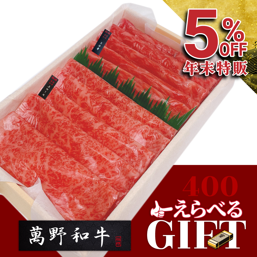 商品詳細 選べる 萬野和牛ギフトお肉の「本当の美味しさ」を知るあなたへ──誰かに教えたくなる、贈りたくなる極雌GOKUMEN萬野和牛であり続けるお客様からのご要望もあり、4種の部位からお好みの2種類をお選び頂ける《極雌 萬野和牛ギフト》すきやき・しゃぶしゃぶをご用意いたしました。届けたい〈あの方〉のお好みに合わせた極上のお肉を箱詰めでお贈りいただけます。各種「肉札」をお付けいたします。すき焼き・しゃぶしゃぶ肉は、お肉1枚ずつシート包装もしております。選べる 箱詰めギフトギフト商品の中でも〈選べるギフト〉に限り、配達だけでなく、店頭お渡しにも対応しております。店頭お渡し&店頭支払いで注文し、店頭お渡し時に萬野屋アプリ会員証を掲示するだけで、萬野屋ポイントを貯めることも、使うことも可能です。追加料金なしで〔のし〕も承ります。ご希望の方は備考欄へ詳細をご入力ください。幸せ体験を届ける美味しい幸せ・美味しい感動の【体験】を届けられる《極雌 萬野和牛》の箱詰ギフトです。箱詰め配達をご希望の場合は、発泡スチロール箱へ入れてクール冷凍便配送となります。お世話になった方へ丁寧な梱包で感謝をお届けいたします。選べる萬野和牛ラインナップ以下の4種類の中からお好きなお肉をお選びいただけます。上赤身赤身ながら霜降りが入っているロース濃厚な赤身の旨味と脂の甘みがある上ロース霜降りが豊富でとろけるような食感サーロイン濃厚な旨味と上質な霜降り萬野屋は、創業以来「肉の目利き」として磨き続けた確かな審美眼と技で、厳しい条件を満たした品質の良い雌和牛だけを厳選して提供しています。一頭買いによる希少部位の提供と、雌牛へのこだわりが生み出す芳醇な味わいは、他にはない特別な食体験を叶えます。“肉のプロ”として、食卓に感動と物語を届けることを使命としています。極雌 萬野和牛創業一世紀近く食肉問屋を営んできた萬野家の経験から徹底的に鍛えられてきた選別眼。その目によって選び抜かれた優秀な素質を持つ黒毛和牛〈雌〉。それが、「極雌(ごくめん)萬野和牛」です。PREMIUM QUEENS BEEF未経産の雌牛雌の中でも未経産だからやわらかい長期肥育(月齢30ヶ月以上)長期飼育で香り高くこの年月を待つ業者は非常に少ないで低融点脂肪サラサラ上質な脂の証脂の溶け始める温度が低い肉質高濃度引き締まった上質な肉質質が良いので胃にもたれにくい芳醇な香り香りまで吟味市場にて直接触れて吟味する本当の意味での一頭買い何百頭の枝肉を生の状態で検品。脂質・肉質を直接手で触れ脂の融点や肉の香りを吟味。(無駄な中間業者を挟まない)安売りではなく安くする我々の目利き・知識で仕入れを行います。そのためにも全社員で捌く技術をも体得し、いくつも業者を通さないことでコストを削減し、上質のお肉をギリギリまで抑えた価格で、お客様へお届けしております。いのちと向き合うから日々「いのち」と向き合う萬野屋では、牛肉を隅から隅まで余すことなくご賞味頂くことで、無駄なく好循環をもたらしていきたいと考えております。どうぞ今後とも萬野屋をご利用下さいませ。 商品名萬野和牛 選べる箱詰めギフト内容量すき焼き・しゃぶしゃぶ肉 総量400g(2-4人前)包装ギフト包装(肉札+箱詰+帯包装) ※追加料金なしで熨斗〈のし〉も承ります。備考欄へ詳細をご入力下さい。※写真はすべてイメージです カートに入れる